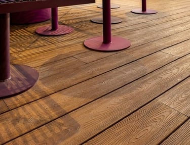 Para áreas de convivência e eventos que exigem beleza e resistência.