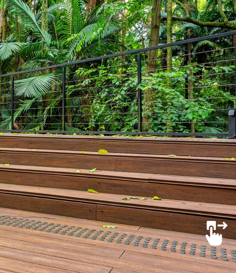 Superfície Antiderrapante: Decks e rampas feitos com este material oferecem maior aderência, mesmo molhados, prevenindo quedas e acidentes.