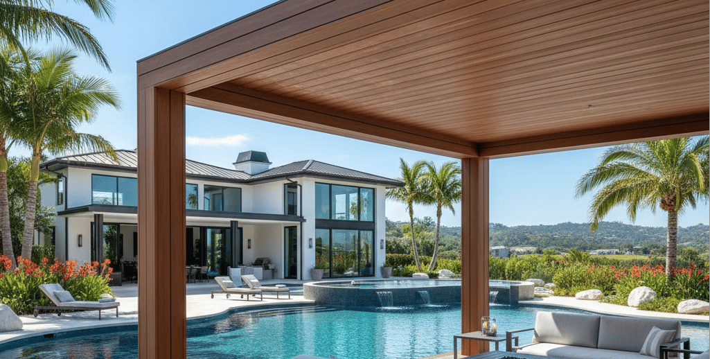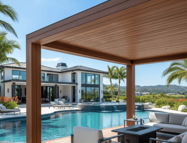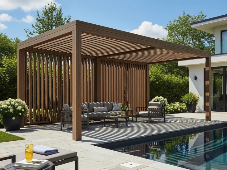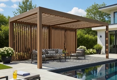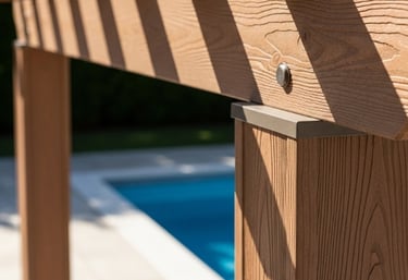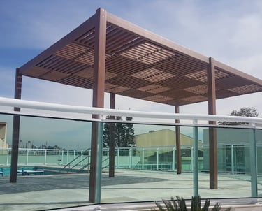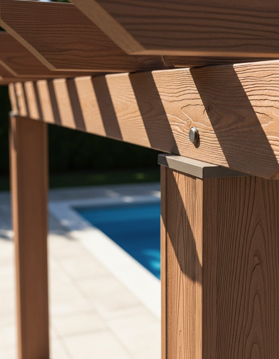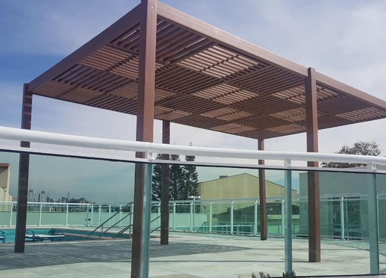 Transforme seu espaço exterior com Pergolados de madeira plástica, oferecendo durabilidade e beleza estética para áreas residenciais e comerciais!