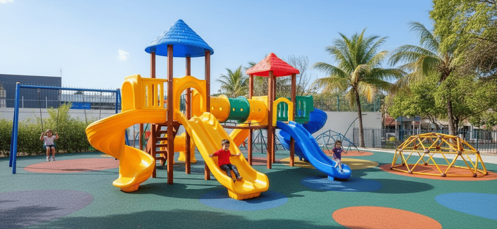 Com design colorido e atrativo, o playground estimula a imaginação e o movimento.
