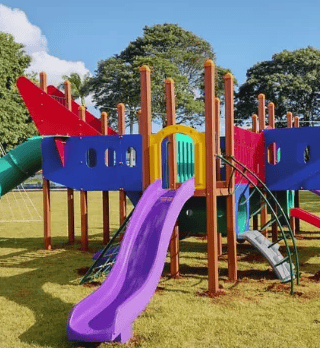 Playgrounds completos com certificação de segurança, alta durabilidade e design planejado para o desenvolvimento motor dos pequenos.